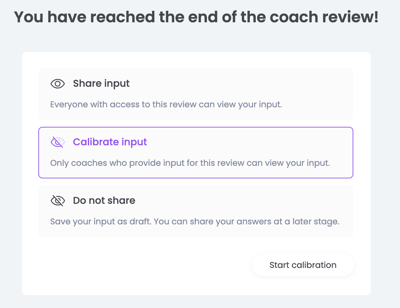 💡 As a coach, in some cases you still have the option to calibrate the input. This will not yet display it in the report for the employee, but other coaches and the Admin can already read your input. This allows you to discuss the scores with each other before finally sharing them with the employee.