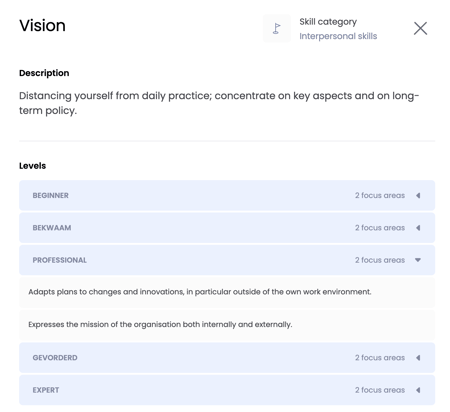 If you want to get an insight into focus areas of a higher or lower level for this skill, you can click on the level.