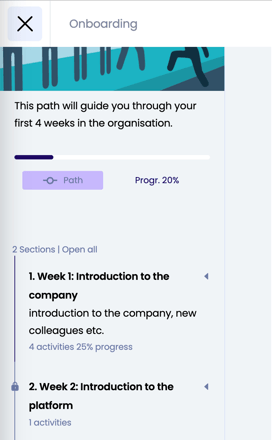 • The learning path can consist of 1 or more sections containing 1 or more learning resources. Different sections provide a certain structure and are often used to cover different themes.