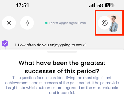 After answering the last question, you get the option to save your answers as a draft. With this option, you do not yet share your input with your coach. When you do share your answers, you make it visible in the report and your coach can see it.