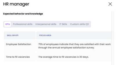 Here you can see the description. In addition, you may see any KPIs, skill and/or competences written out to focus areas and behavioural examples.