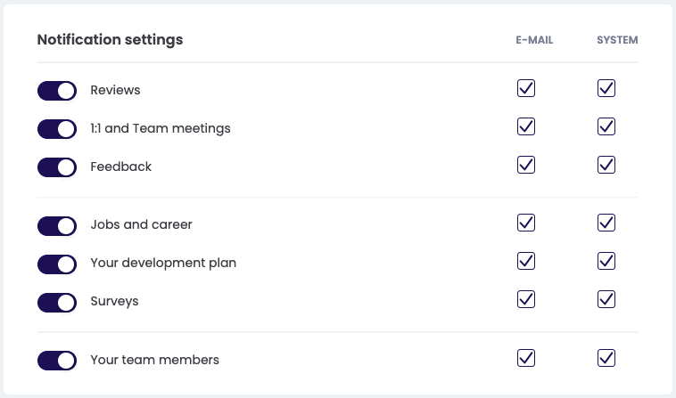 In the section on notifications, you can determine exactly what you want to receive notifications about. You also have the option of choosing whether you want to receive an e-mail notification or just a system notification.