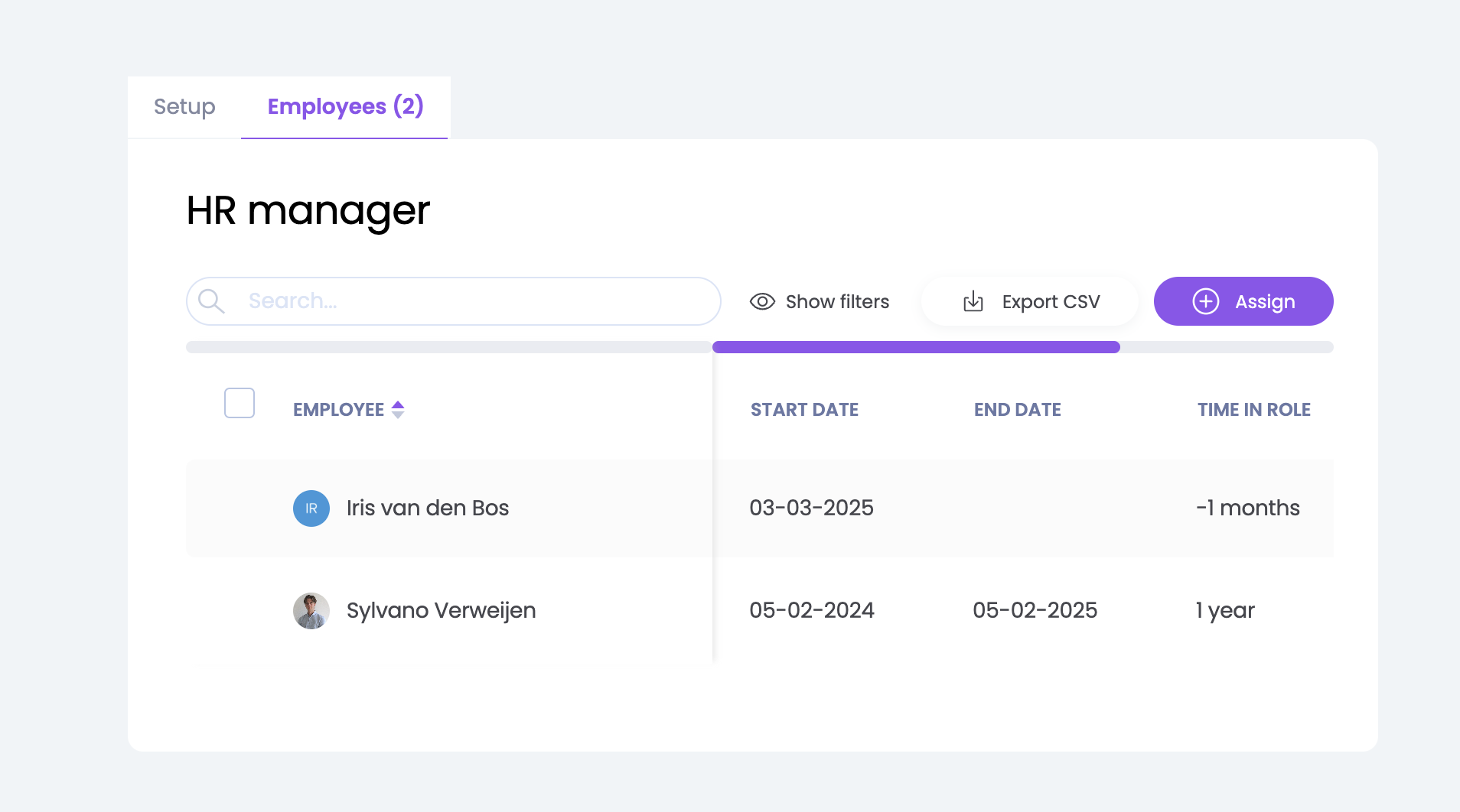 💡De geselecteerde start- en einddatum bepalen of dit de actieve, vorige of toekomstige functie van de werknemer is. Dit wordt weerspiegeld in de status van de functie per persoon.