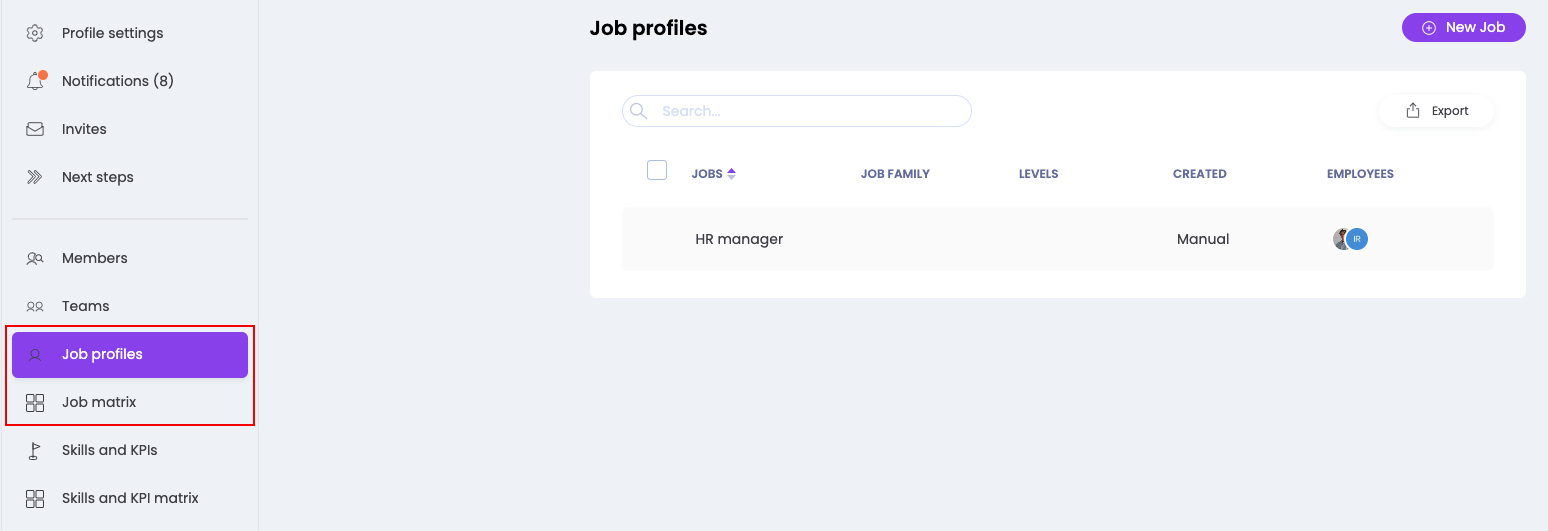 Vervolgens kun je de verschillende stappen doorlopen om een functieprofiel aan te maken en toe te voegen aan Learned: