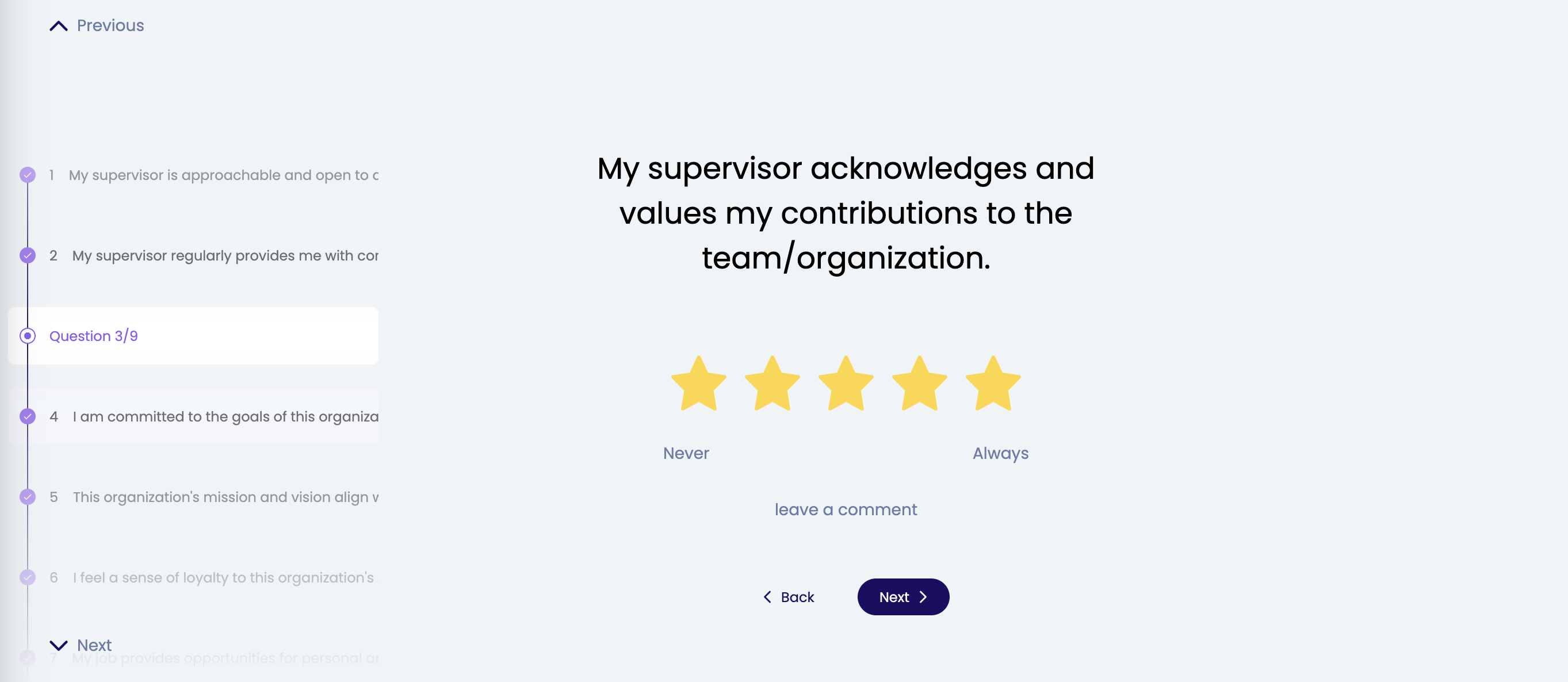 Bij een Pulse survey krijg je over het algemeen verspreid over de tijd elke keer enkele vragen toegestuurd om te beantwoorden in plaats van heel veel vragen die je in één keer moet beantwoorden. Deze survey kost je dus aanzienlijk minder tijd dan een traditionele survey.