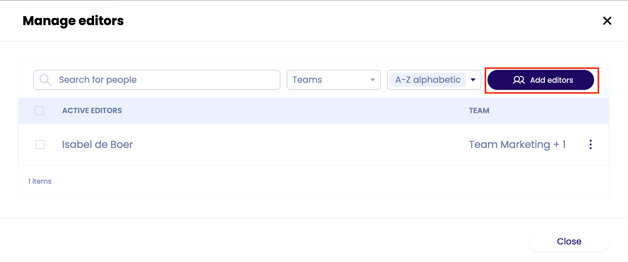 Wil je dat anderen het leerpad kunnen aanpassen wat je hebt aangemaakt? Voeg dan bewerkers toe aan het leerpad. Je kunt iedereen uit de organisatie toevoegen als bewerker.