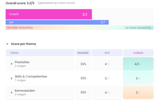 💡 Mocht er in de organisatie ook gebruik worden gemaakt van peer feedback van collega's zullen deze scores mogelijk ook weergegeven worden in de algehele waardering.