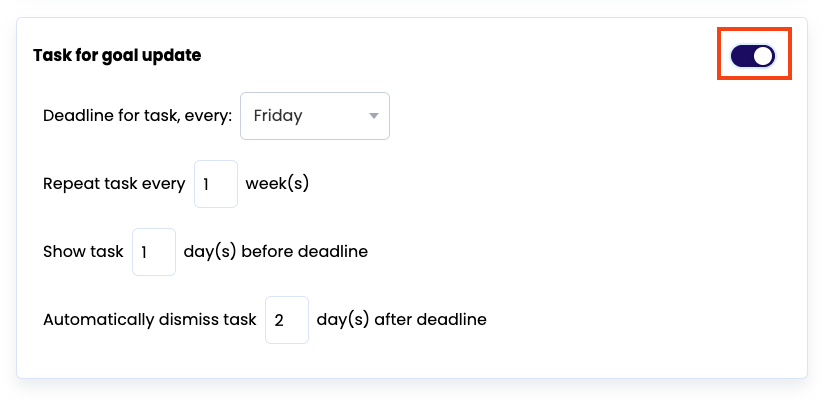 Wanneer je extra notificaties wilt versturen ter herinnering dat de medewerker de voortgang van de doelen bijwerkt, kun je dat ook hier inregelen.