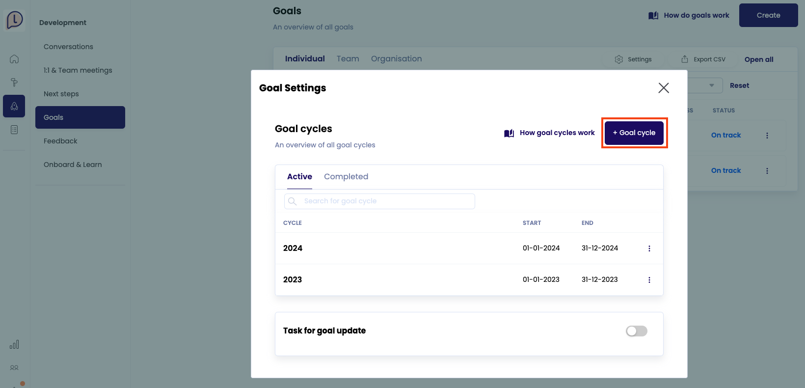 In dit artikel laten we zien hoe je werkt met doelen cycli in Learned.