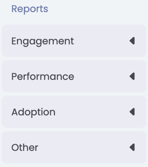 Linksonder in het menu ook een knop 'Rapportage'. Als je hier op klikt, vind je als admin en coach de verschillende rapportages terug in Learned, afhankelijk van jullie bedrijfsinstellingen in Learned: