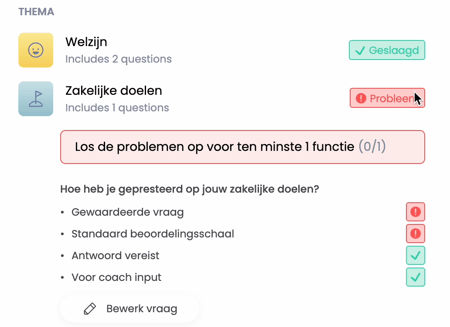 • Oplossing: Voeg een vraag toe aan het thema die specifiek gericht is op de input van de coach.
